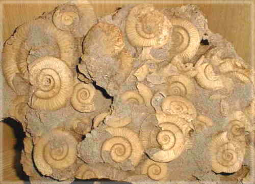 Die typischen Ammoniten (Cotteswoldia und Cotteswoldia subcompta) und Schnecken (Alaria subpunctata) aus dem Lias von Mistelgau.